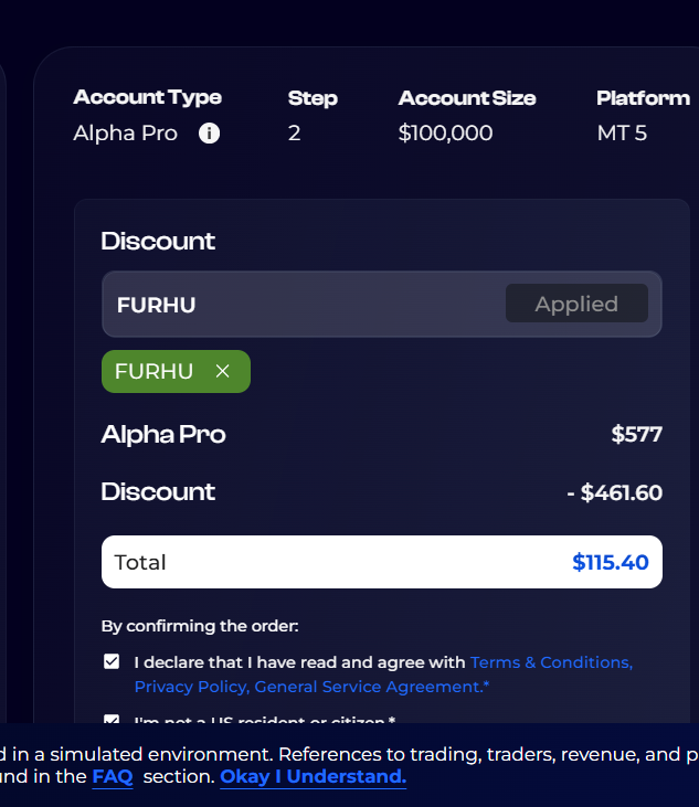 Enjoy up to 80% savings on all pro account sizes at Alpha Capital Group by using codes: T7GPM, 9WB1F, FURHU, QNDP0 or XZSJ5 at checkout. Trade smarter, trade alpha, and save big with Alpha Capital Group! ![]() | |
