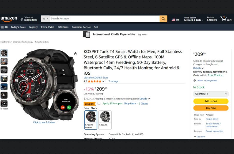 $25 OFF KOSPET TANK T4 Smartwatch on Amazon | |