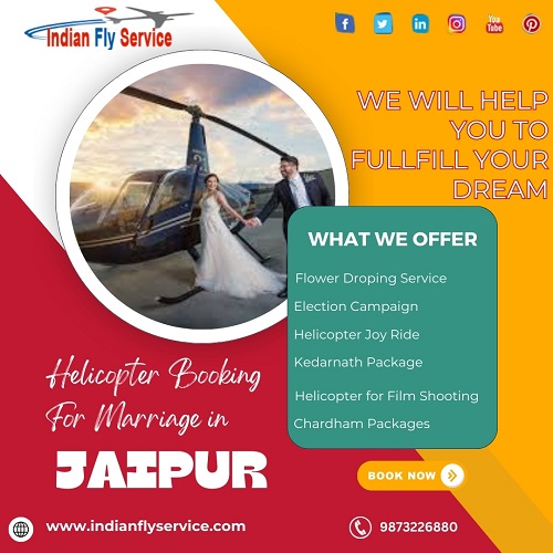 Now you can book a helicopter for wedding in Jaipur and add a royal touch to your celebrations.With professional arrangements and safety as the top priority, helicopter booking includes all necessary permissions, experienced pilots, and smooth operations to ensure a stress-free experience. From small gatherings to lavish weddings, these services are designed to suit different needs and budgets. Indian Fly Service is one of the best service provider in india. For more details please call +91 9873226880 or visit our website https://indianflyservice.com/ Contact Us :- Indian Fly Service 415, 4th Floor ,ABC Complex,Shakarpur,Delhi-110051 Mobile number :- 9873226880 E-mail :- info@indianflyservice.com Website :- https://indianflyservice.com/ ![]() | |