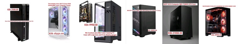 New Computer casings Stone Refurbished Small Form Factor Computer Casing with 300 watts PSU - 2500.00 Century Gaming Mid Tower M_ATX Computer Casing with glass front and side - 7500.00 display gauges - 19950.00 MSI MPG VELOX 100PE AIRFLOW Gaming ATX Computer Casing - 20950.00 NZXT H510 Computer MID-TOWER ATX Case - 21950.00 WJCOOLMAN Y40 BLACK 6 DIAMOND FAN ARGB GAMING CASE - 29950.00 CONTACT : 0786 178372 or 0726 178372 LOCATION : Shop 501 (5th floor), Veteran House (Graffins college) Moi avenue, Nairobi Kenya ![]() | |