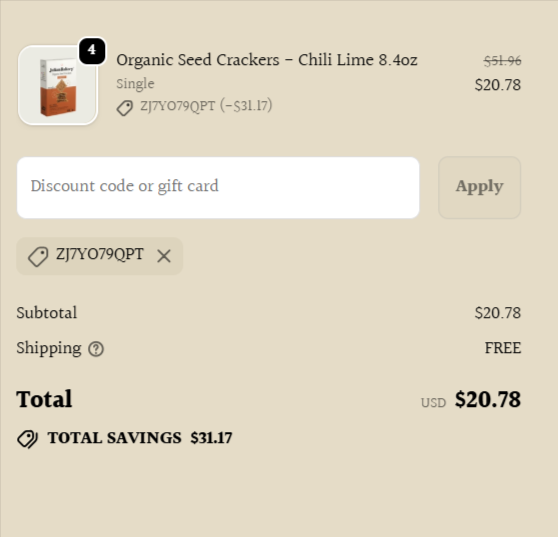Use coupon code: ZJ7YO79QPT at checkout to enjoy 60% OFF all your orders from Julian Bakery, plus get Free Shipping on purchases over $39.99! Stock up on healthy, delicious foods and save big while this offer lasts. ![]() | |